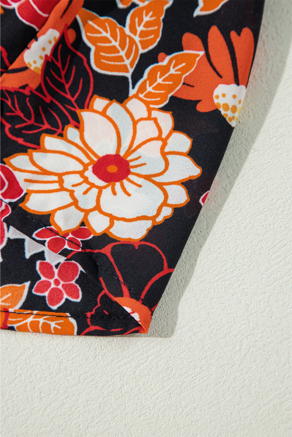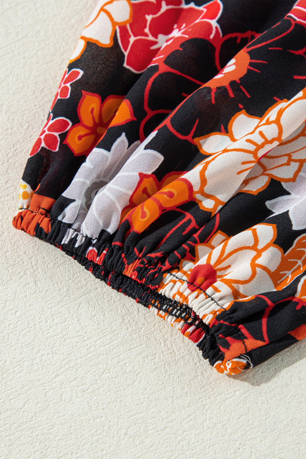 Multicolour Smocked High Waist Long Sleeve Floral Dress