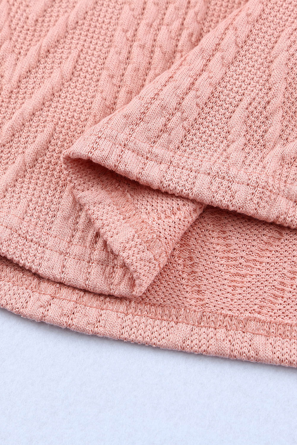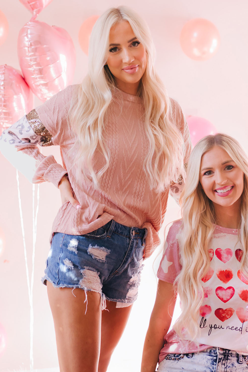 Pink Leopard Sequin Splicing Sleeves Textured Knit Top