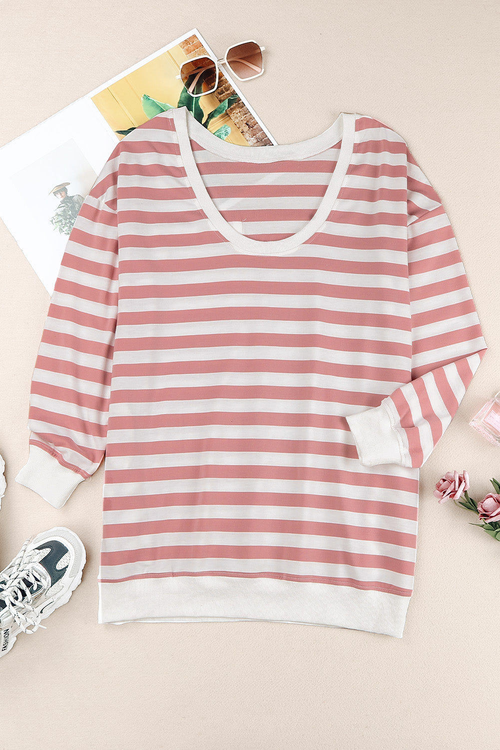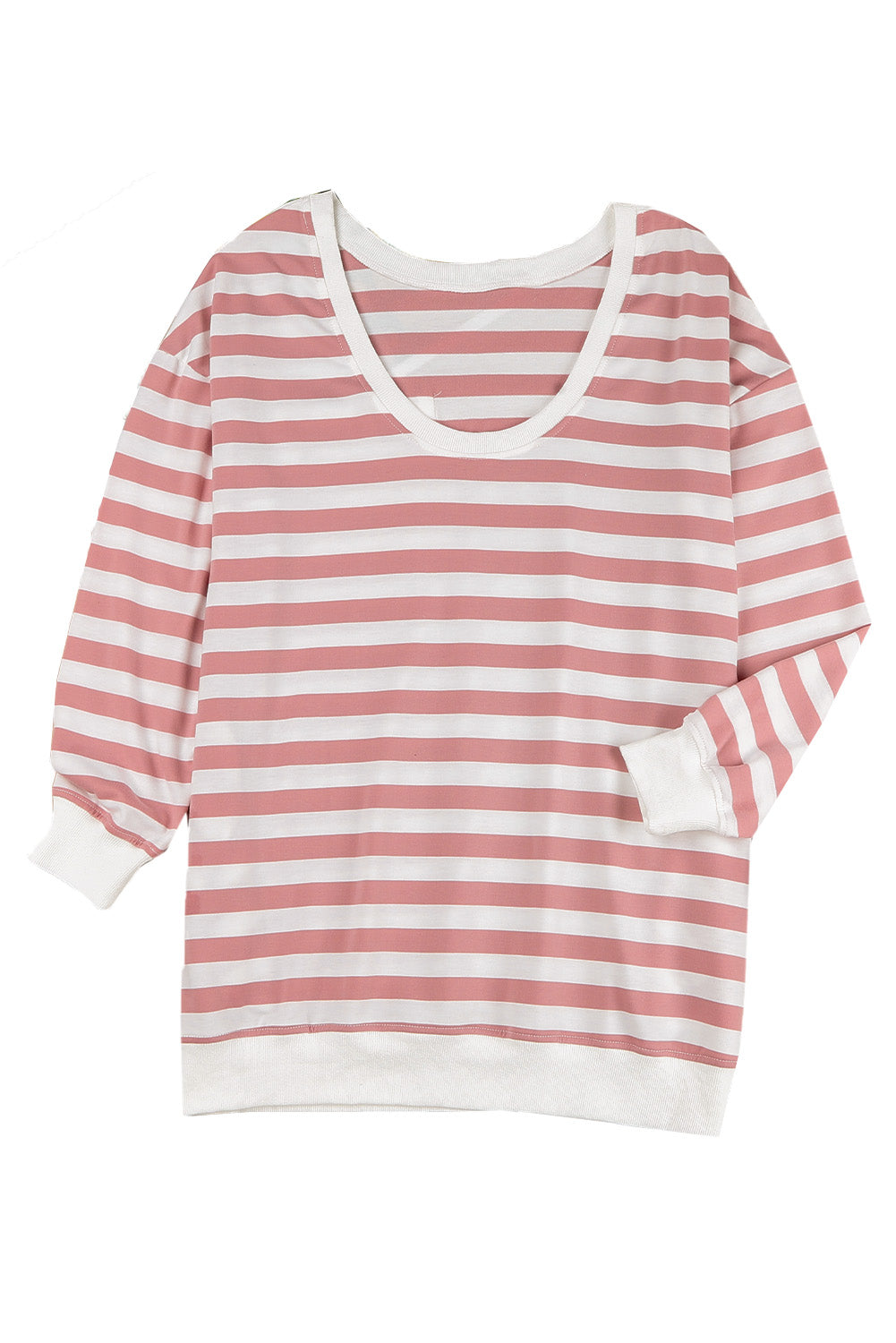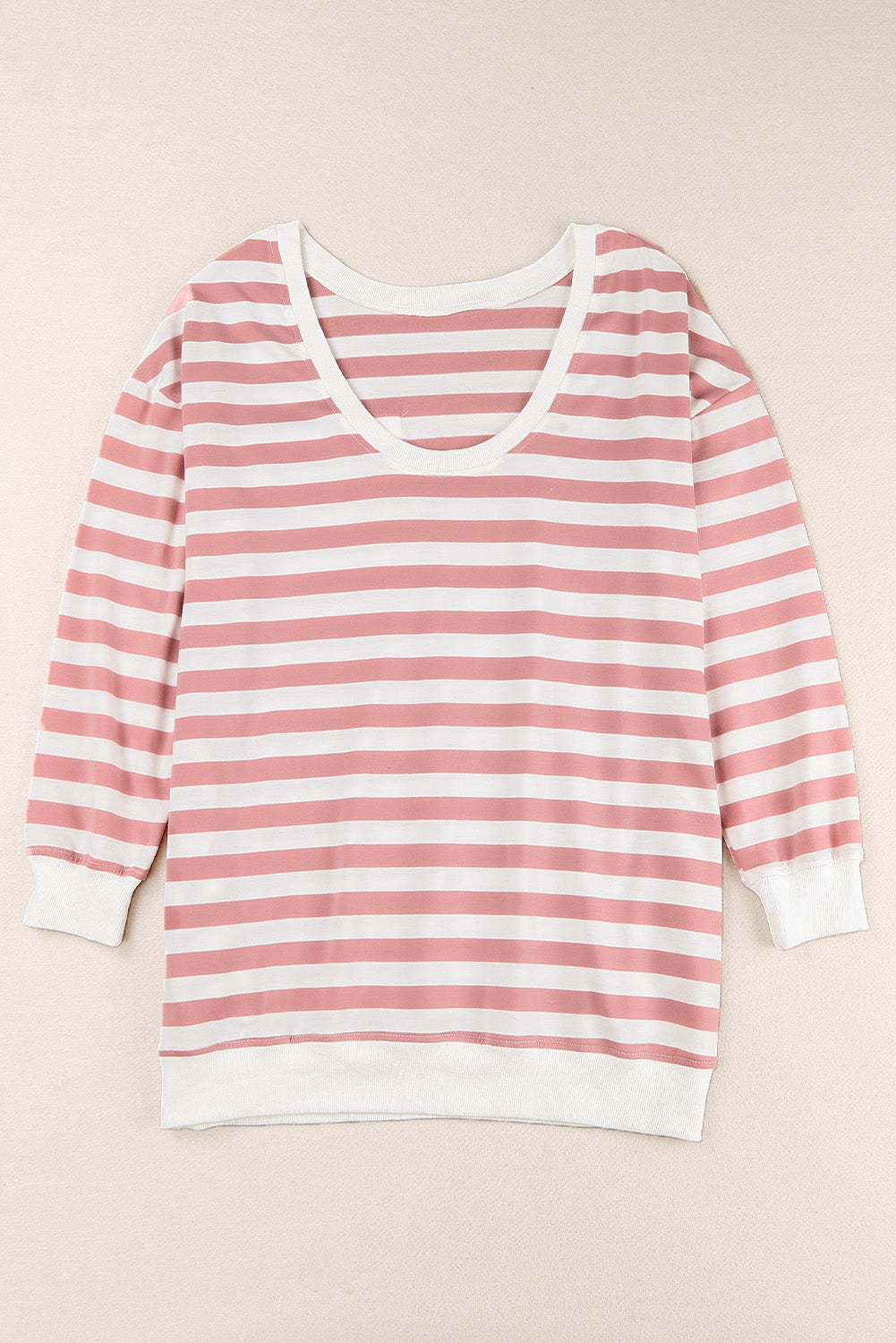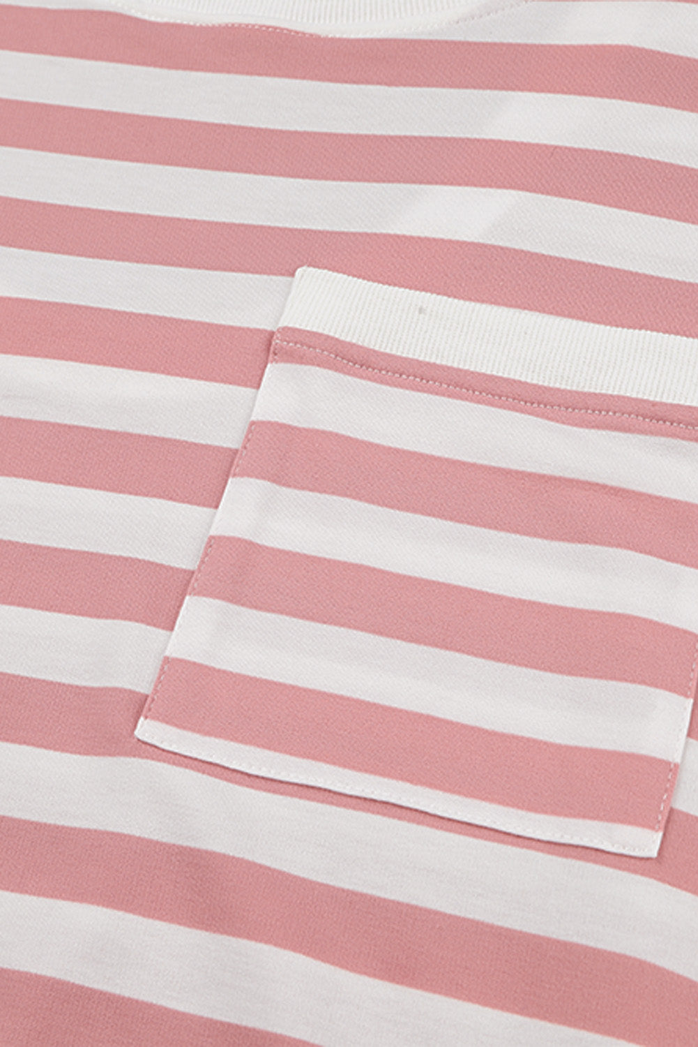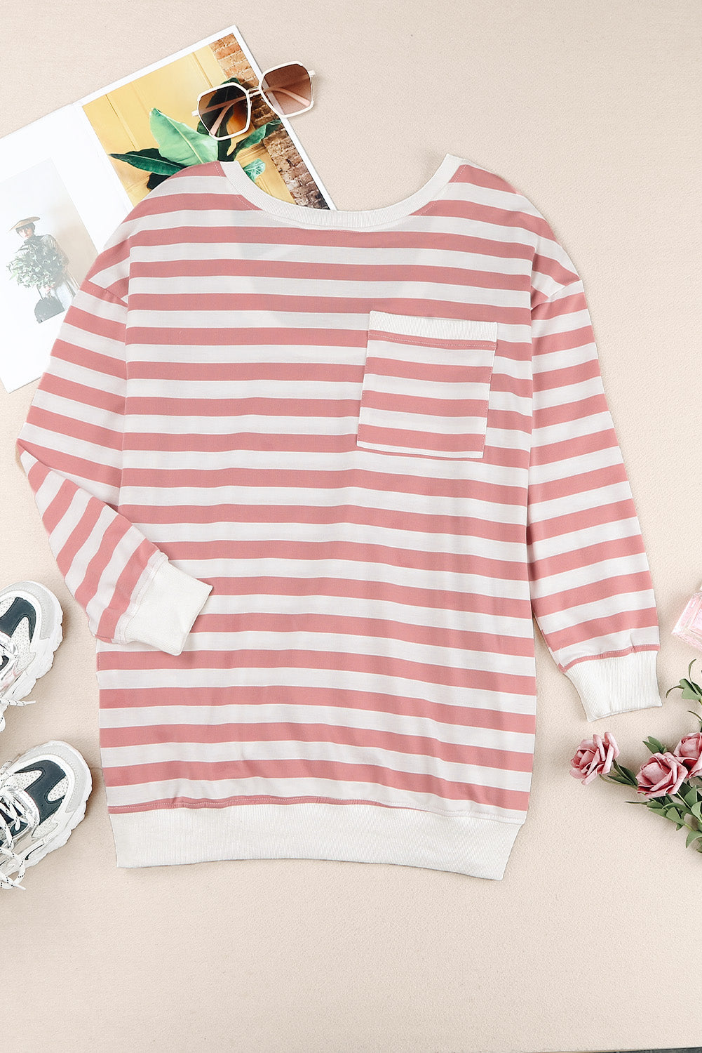 Pink Loose Long O Neck Sleeve Office Female Pocket Tops