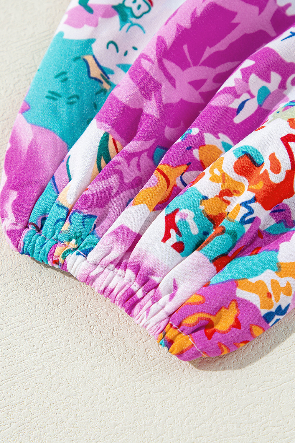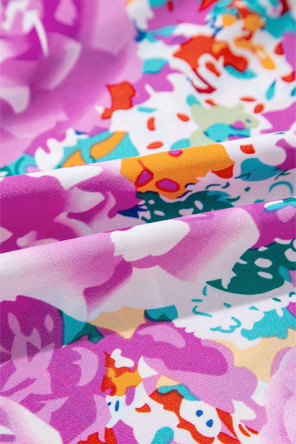 - The vibrant floral print paired with puff sleeves provides an elegant touch