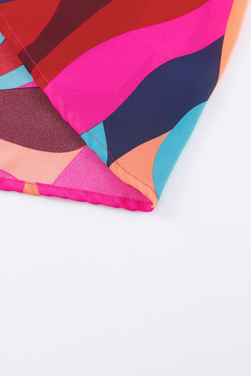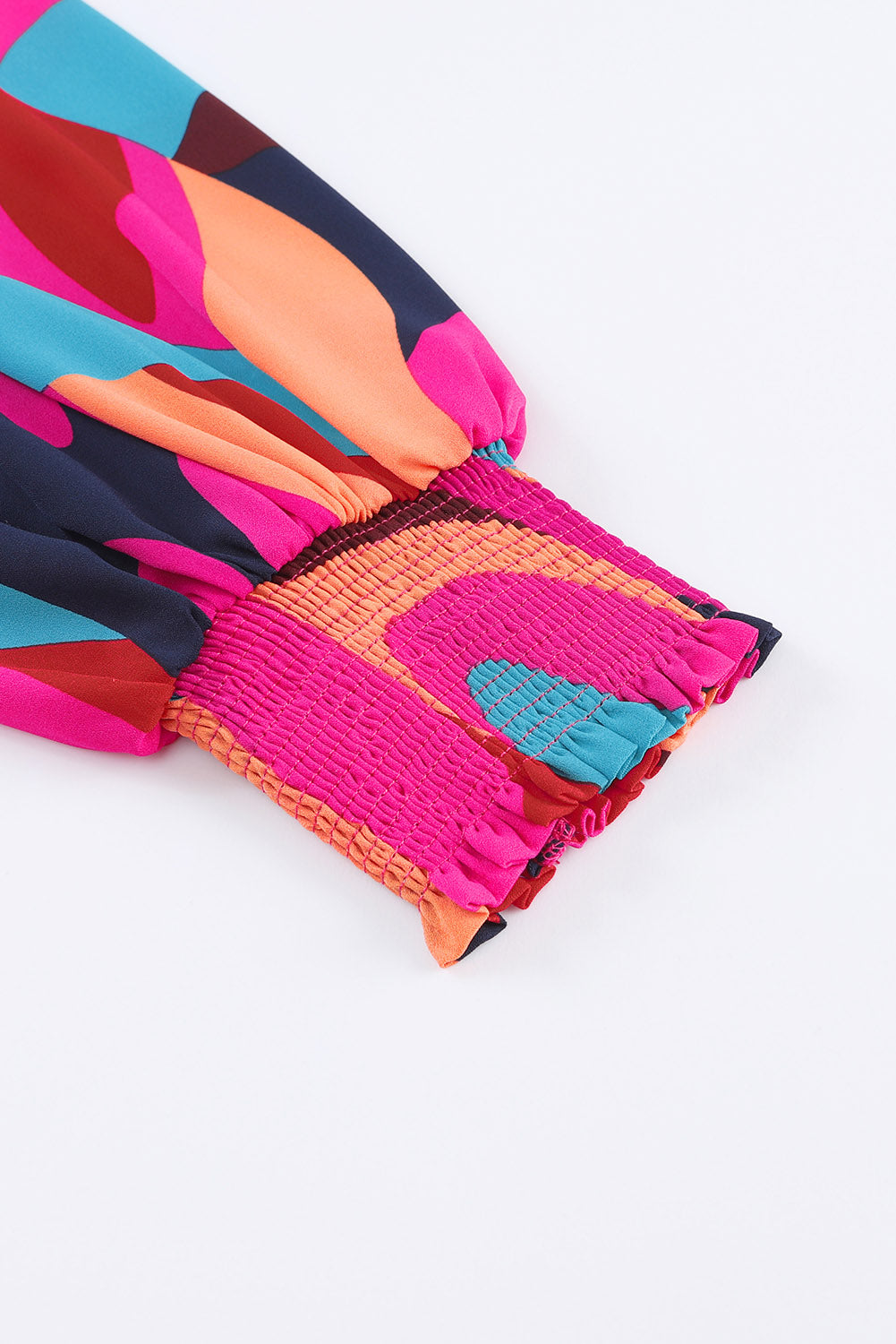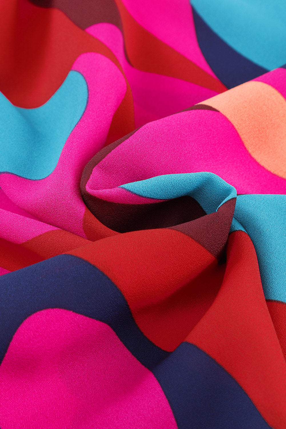 Red Abstract Printed Belted Puff Sleeve Mini Dress