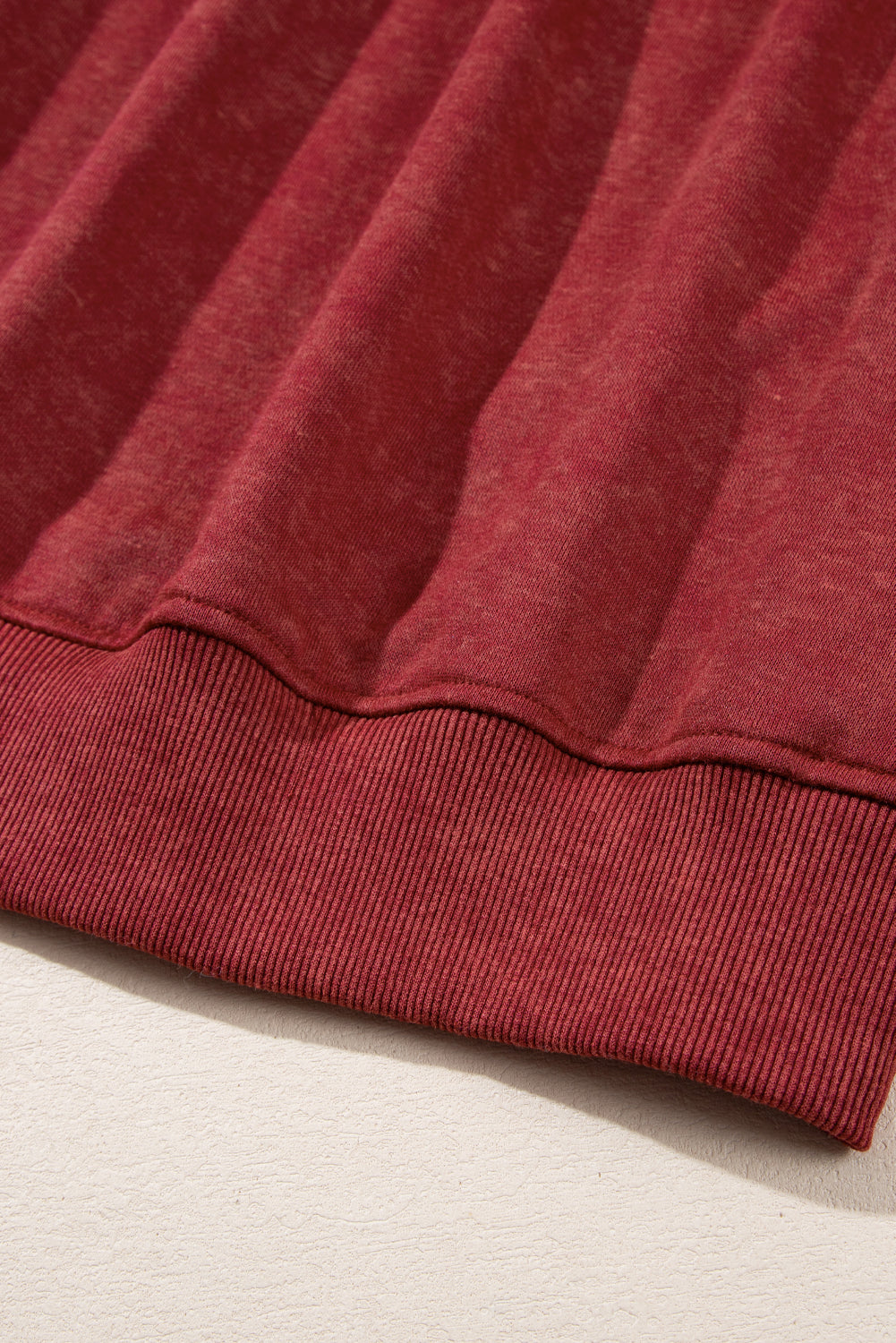 Red Dahlia Drop Shoulder Crew Neck Pullover Sweatshirt