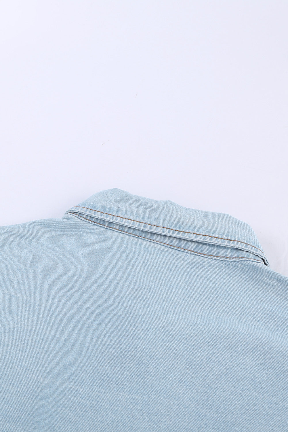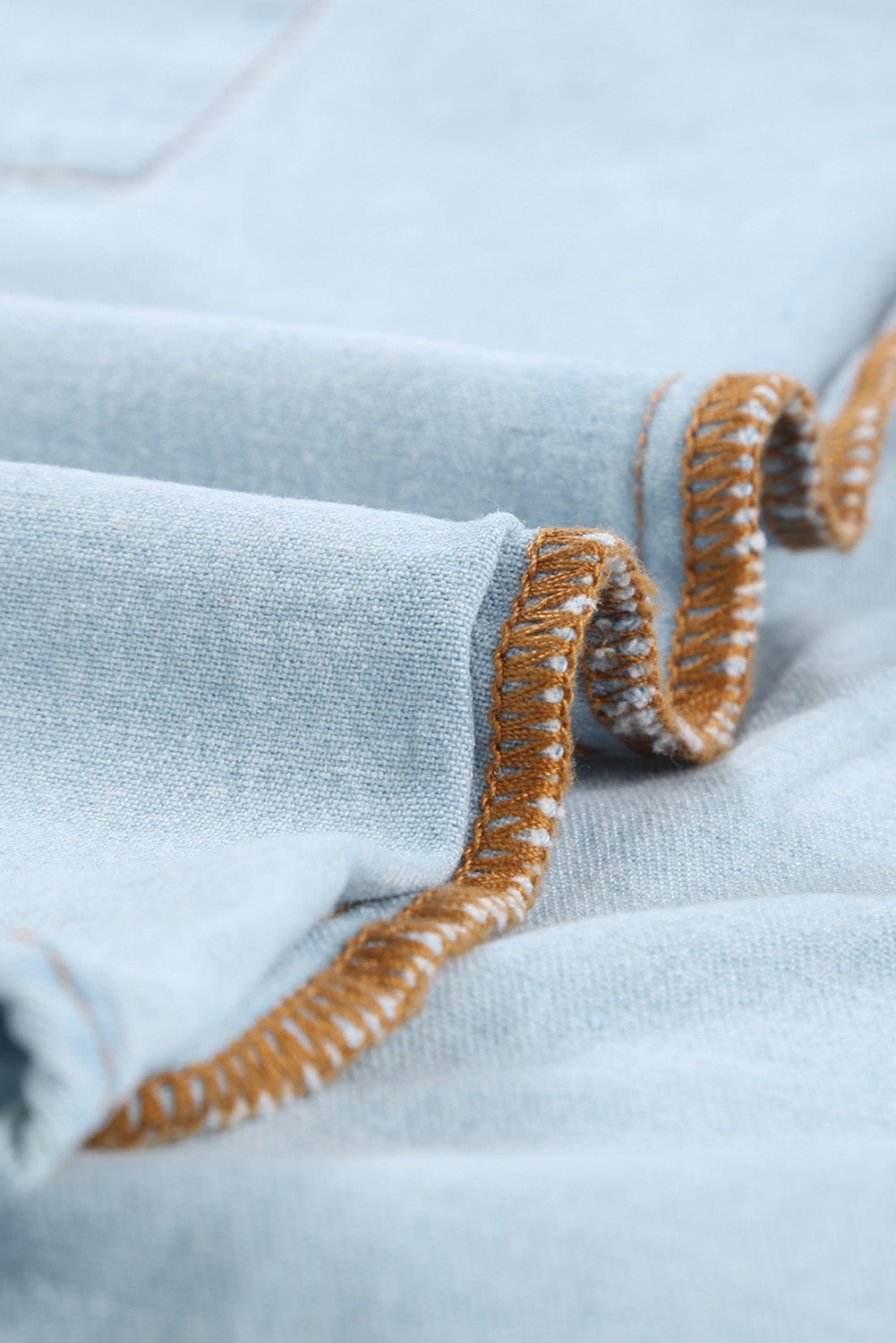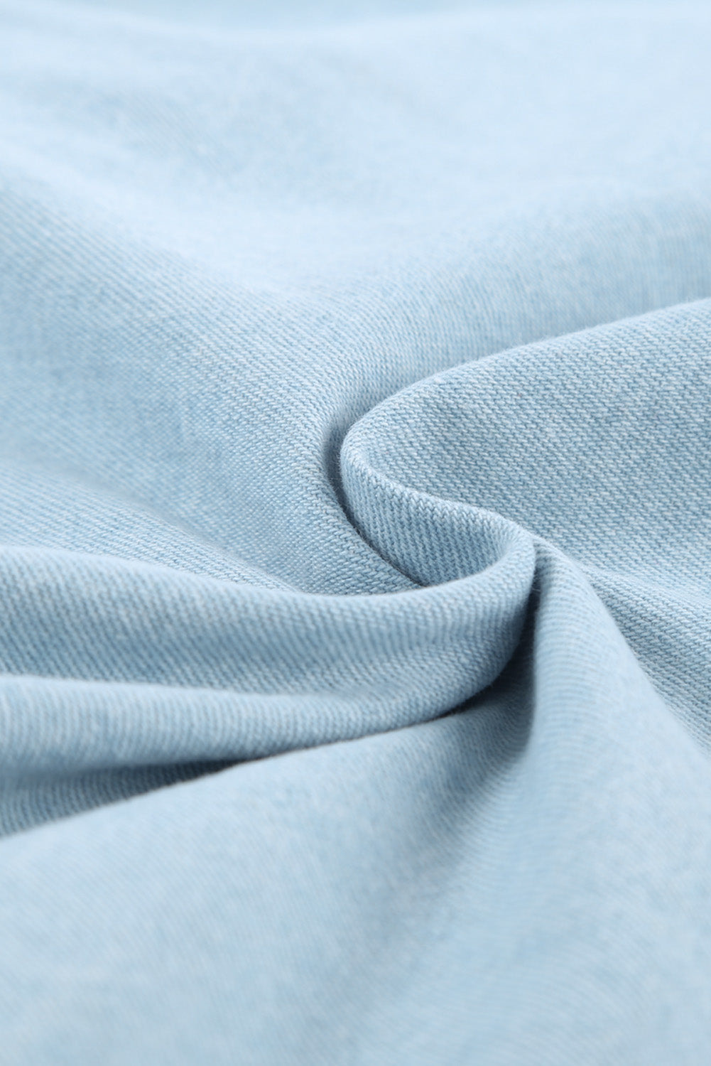 - Our Contrast Leopard Denim Jacket is a light wash denim with contrast leopard sleeves