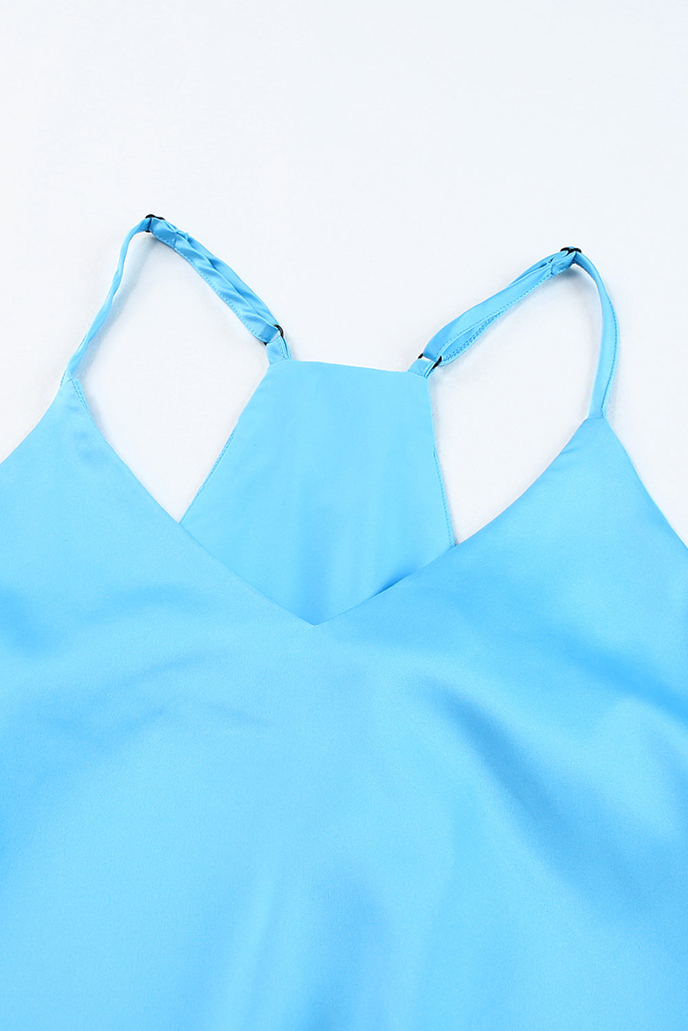 - This leisure v neck tank features adjustable straps and a racerback neckline