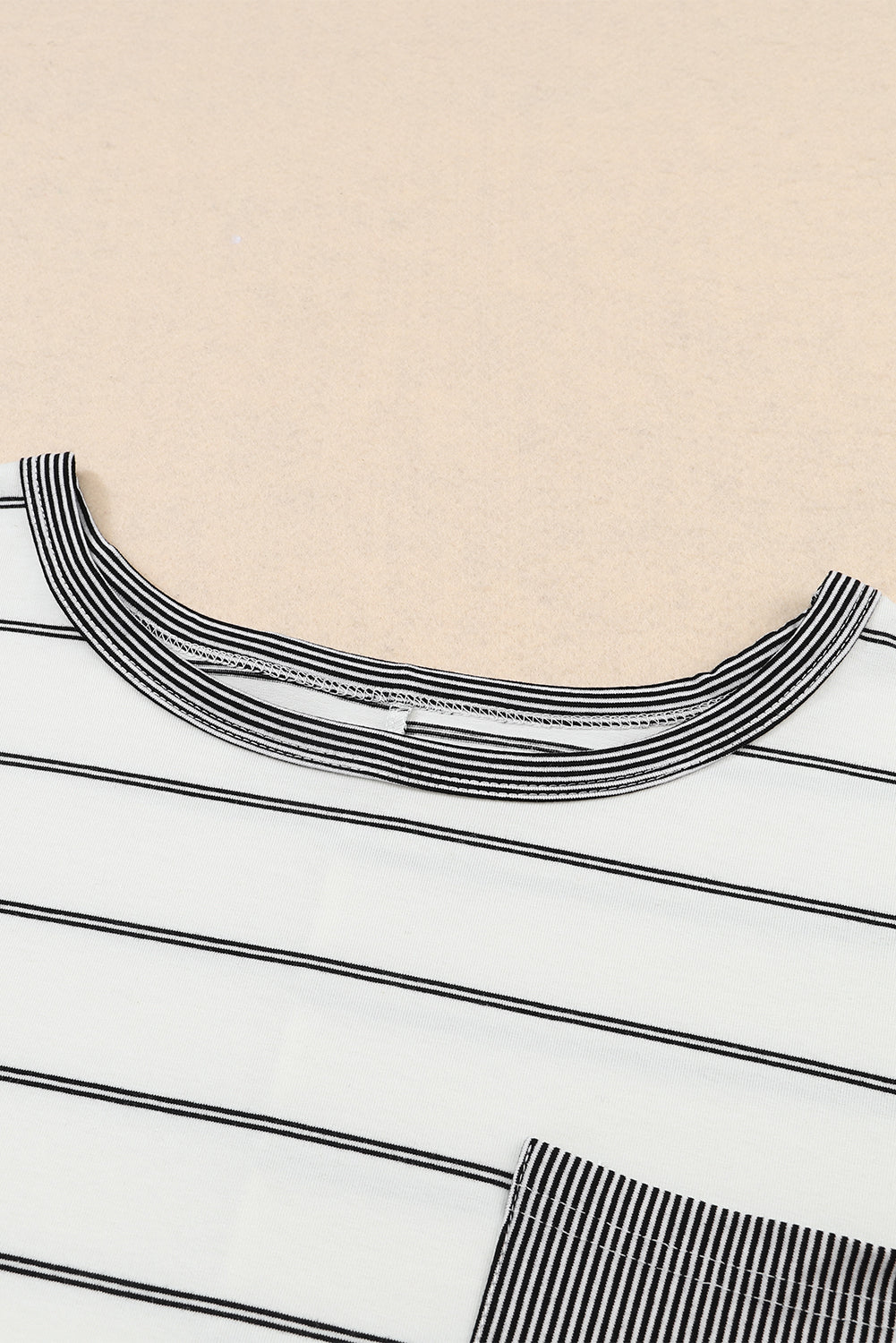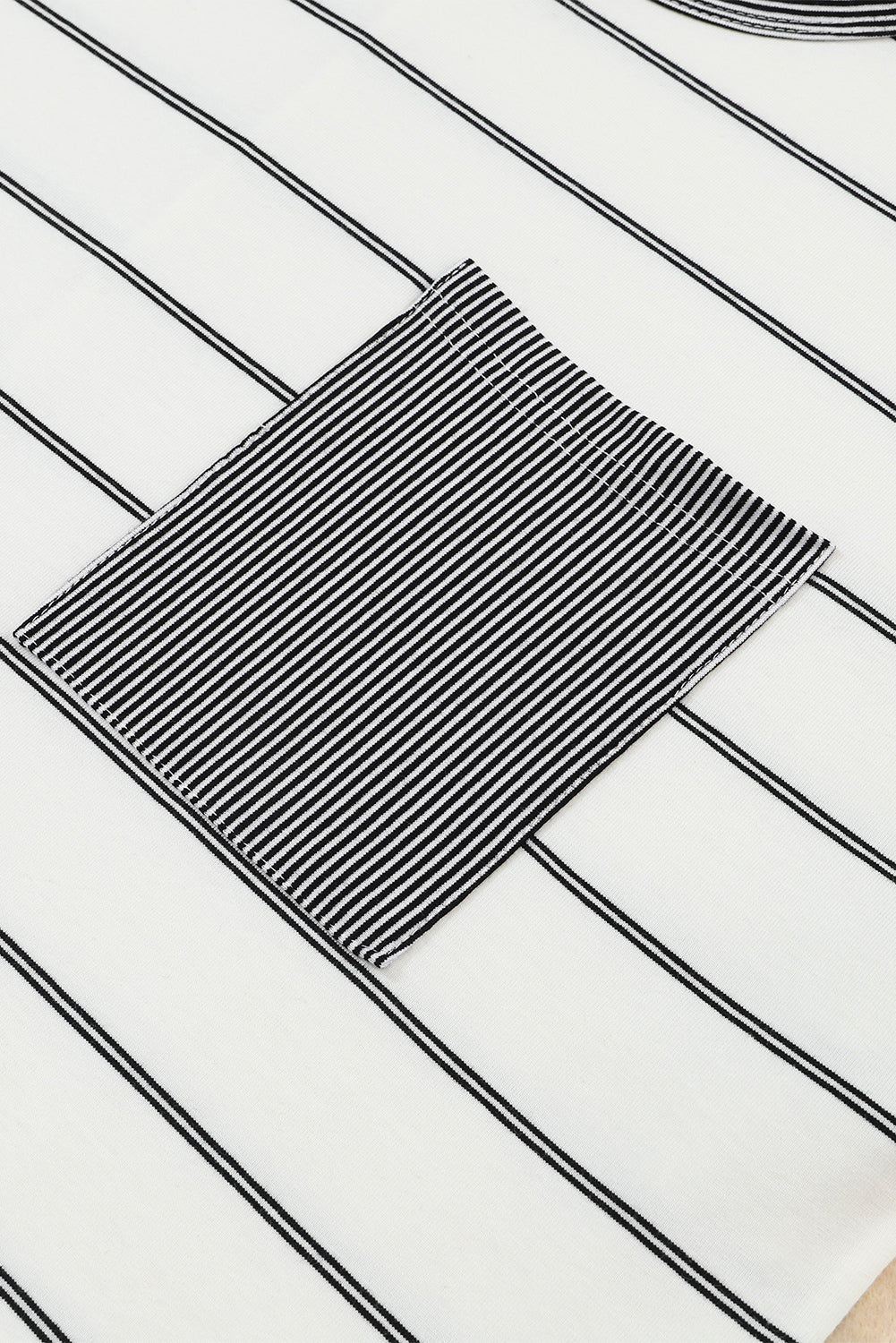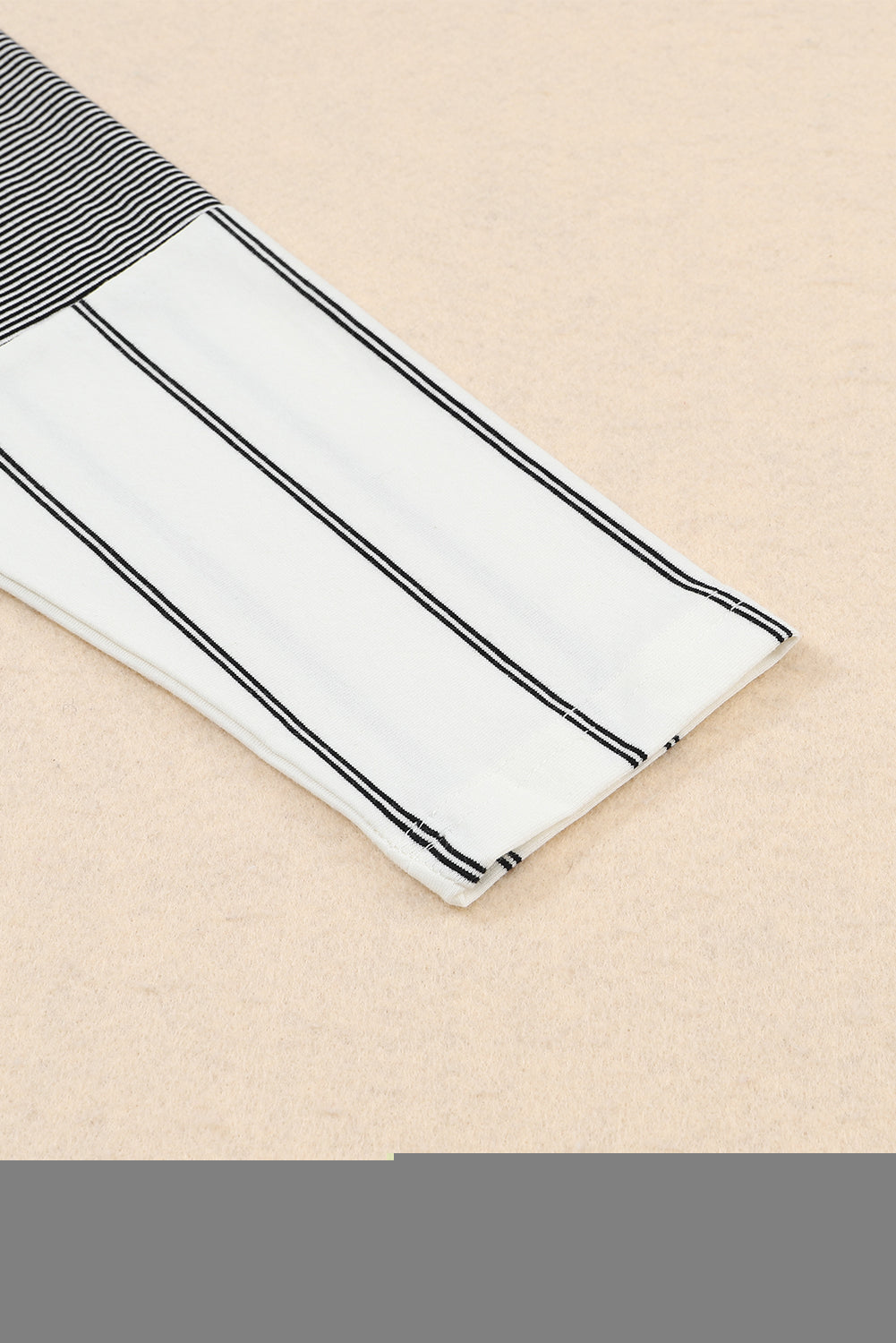 Stripe Patchwork High Low Side Slits Long Sleeve Top