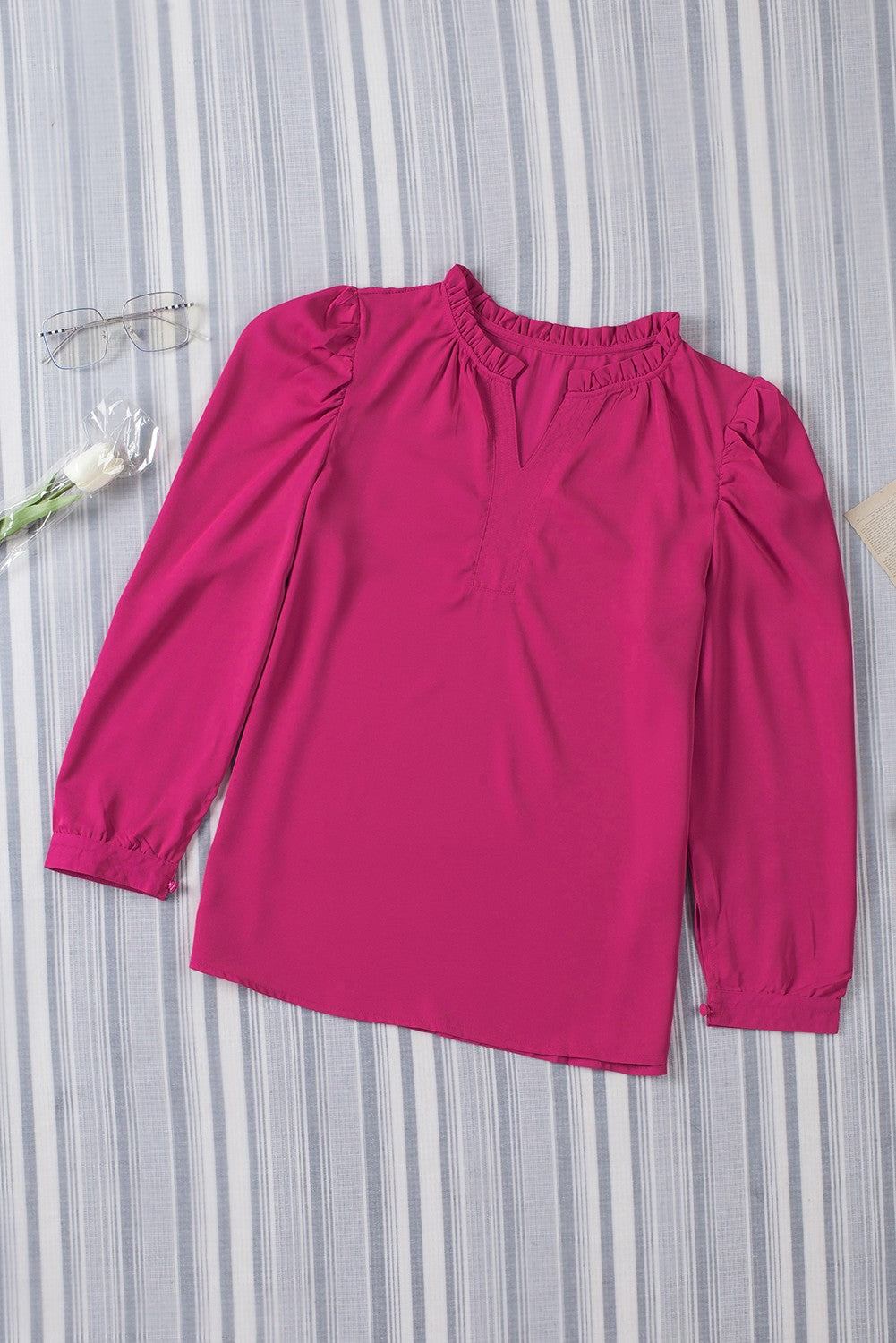 - This v-neck blouse is very elegant and comfortable with a loose fit