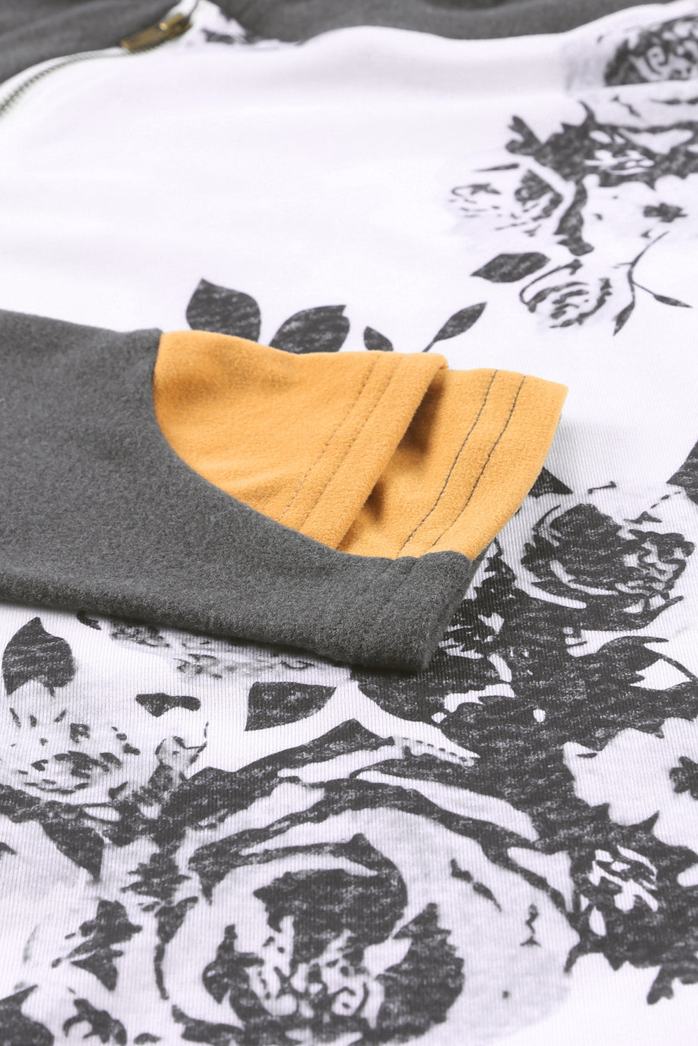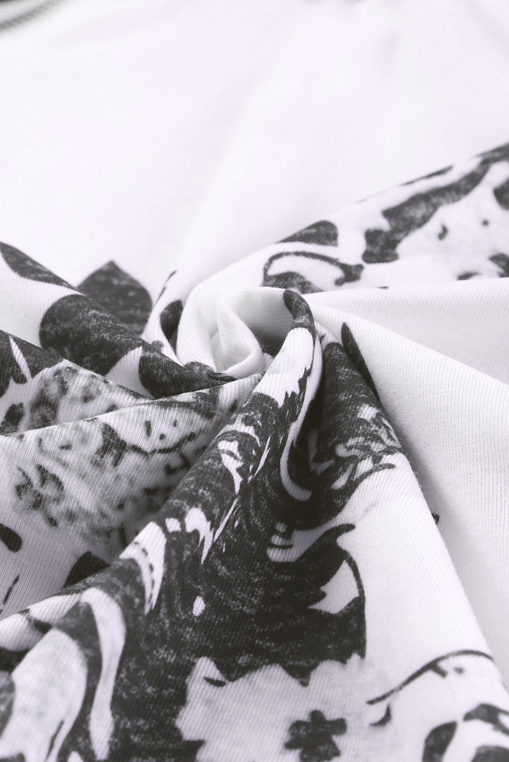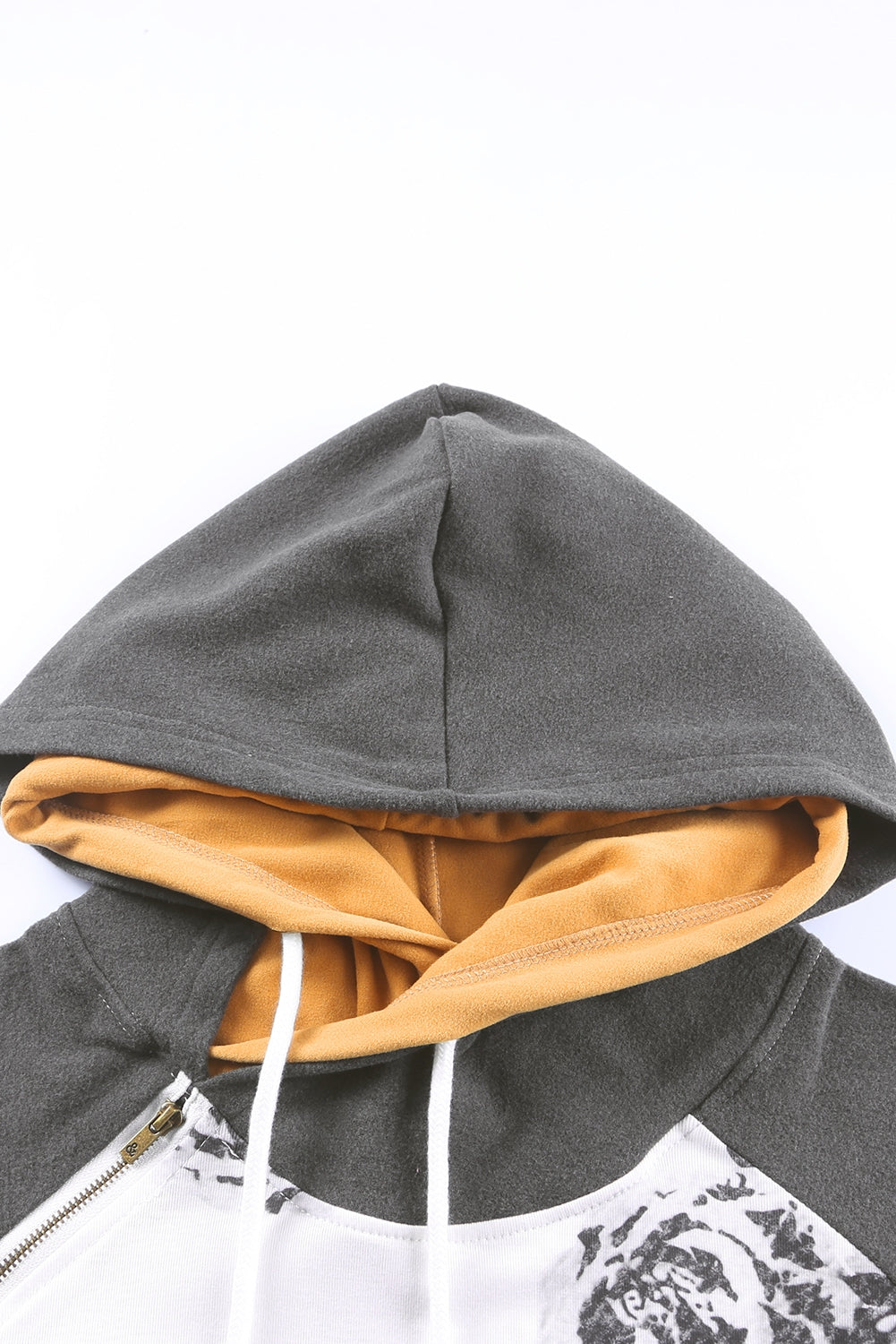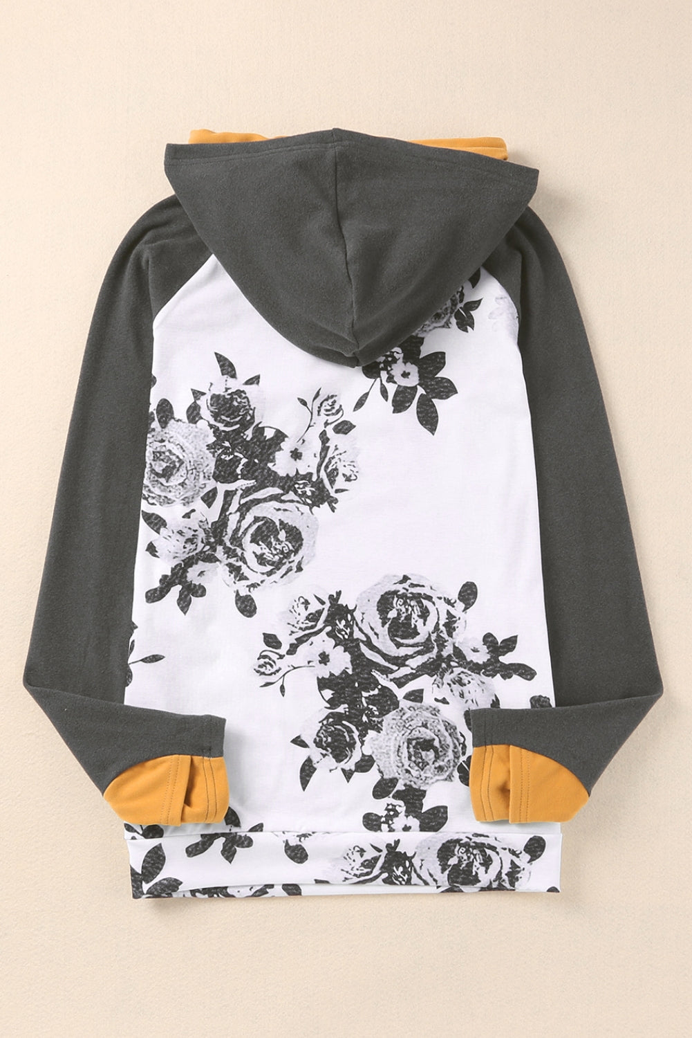 White Floral Pattern Raglan Sleeves Double Hood Sweatshirt
