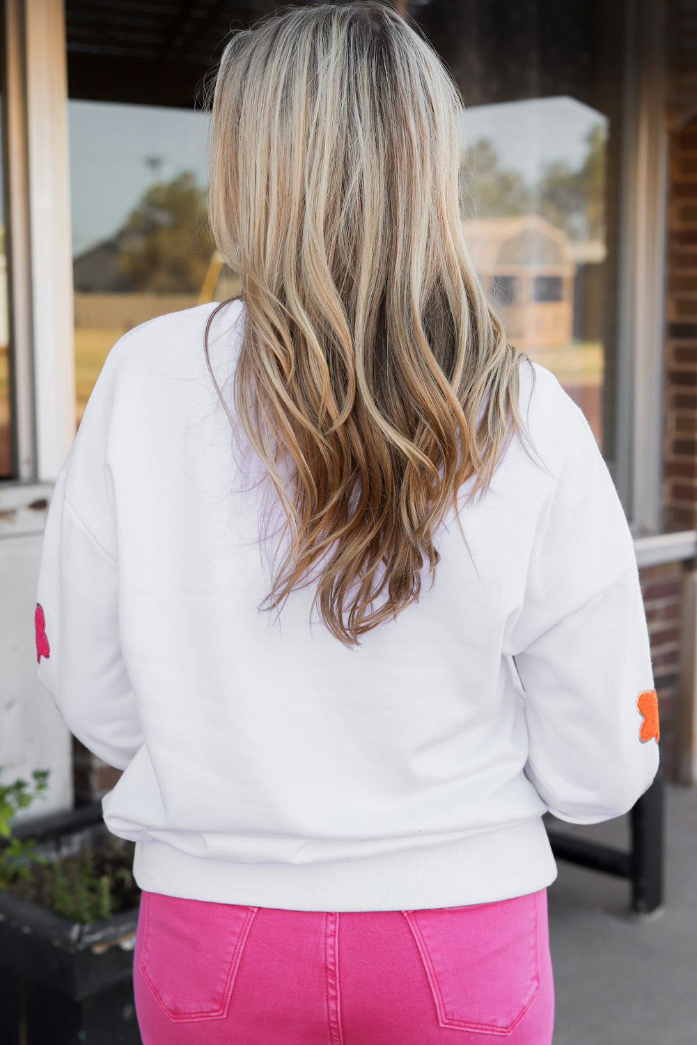 White Glitter Howdy Patch Graphic Casual Sweatshirt