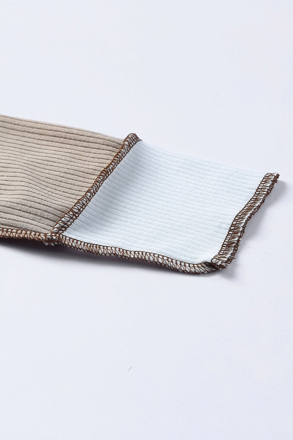 White Irregular Color Block Seaming Trim Rib Knit Top
