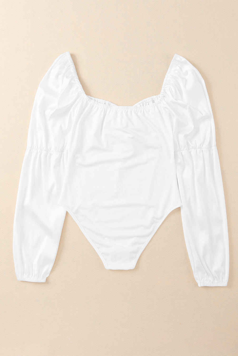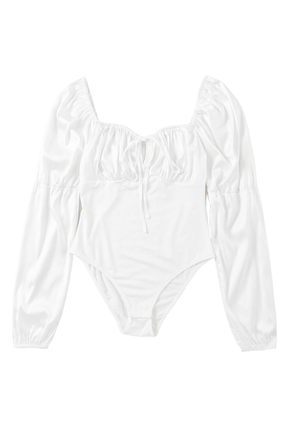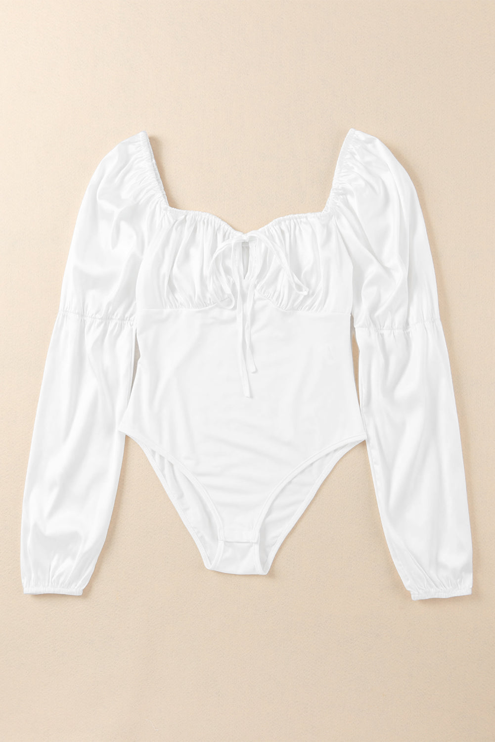 White Square Neck Drawstring Pleated High Waist Bodysuit
