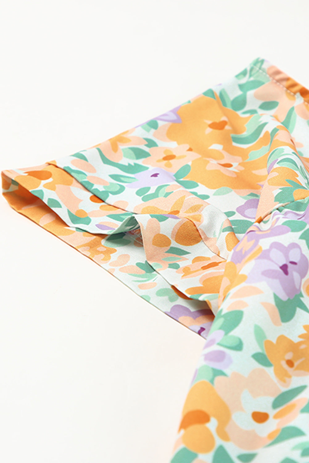 Yellow Floral Print Keyhole Back Short Sleeve Babydoll Blouse